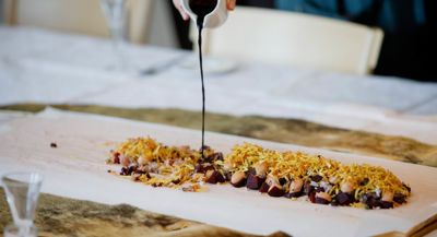This group designed a fine-dining experience for Västerbottensveckorna, an annual cultural event in Stockholm that highlights the North to regional, national, and international decision-makers. Supported by Susanne Jonsson, Sámi chef and editor of a fine-dining seal recipe book, the group created two mock seal dishes: tuna cooked in blood to mimic seal meat, served with tuna ceviche; and ice cream enriched to replicate seal milk’s high fat content. Dramatic elements, such as pouring beef blood at the table to symbolize fish massacres and sour cloudberry sauce on the ice cream to highlight seal pups’ deaths, elicited strong emotions. The performance sparked deep dialogue, with one official saying they learned more in one afternoon than in a decade of workshops. All participants expressed interest in future experiments.
