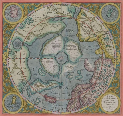 Gerhard Mercator, “Septentrionalivm Terrarvm descriptio. Per Gerardum Mercatorem Cum Privilegio,” A Representation of the Northern Regions, (1633 version of 1595 map). Osher Sheet Map Collection. Courtesy of the Osher Map Library and Smith Center for Cartographic Education, University of Southern Maine.