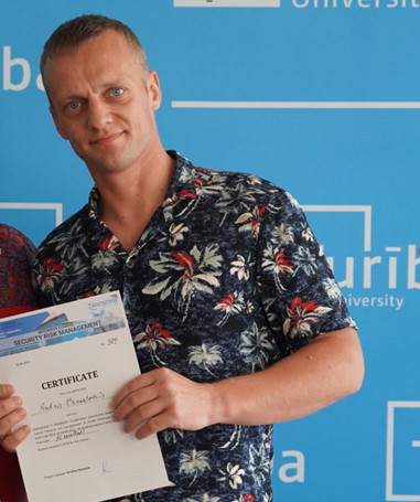 A significant benefit of this course was the development of English language skills and the acquisition of new knowledge in the field of security. It was astonishing to work on tasks with a group every day, where each participant was from a different country, necessitating not only consideration of task completion but also the ability to collaborate and communicate with representatives from other nations” says Andris Bernatovičs, Turiba University student of “Organisational security” bachelor study programme.