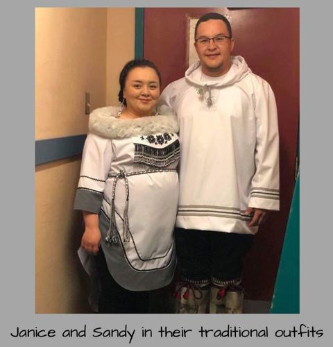 Born in Kuujjjuaq, Janice has been throat singing since she was 7 years old. She is part of the Kuujjuaq Youth Group who performs each year for the opening of the Aqpik Jam Festival, in Kuujjuaq. Not only does Janice throat sing, but she also plays the Inuit drum and she's the one who taught her partner, Sandy Emudluk, how to play! During performances, Janice always wears a traditional outfit called "arnautik" sewn by herself and her mother.
