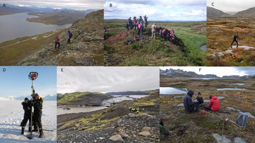 F) Students mapping the active layer and doing soil characterisation in the Sisimiut area, Greenland (photo: Sona Tomaskovicova).