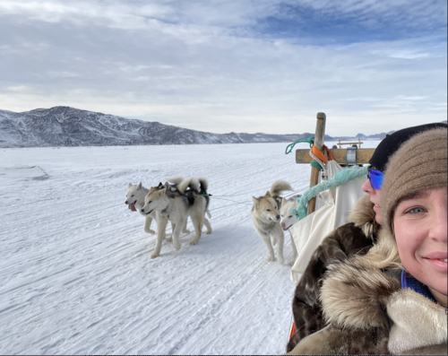 We want to spread awareness about our field study in social work by doing interviews with a lot of relevant actors to answer our research question. We pursued a broader view of these Greenlandic violated women in Denmark and Greenland, and how professionals handle our specific group to support and prevent a spiral of violence. Our first stopover was in Kangerlussuaq and we experienced from the first meeting breathtaking nature and welcoming people who guided us along the way. After a little while in our hotel, we were ready for a new adventure as passengers on a dog sled. It was a part of the Greenlandic way of living and therefore a cultural element within our research field.