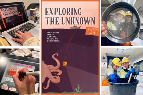 Another artist involved in the expedition was Jane Zimmermann, a science illustrator, who collaborated with Ann Eileen Lennert, an environmental anthropologist. Together, they are developing a creative narrative that highlights the complex connections between humanity, the living planet, and its diverse ecosystems. Their joint efforts have led to the creation of a comic titled "Exploring the Unknown," which draws inspiration from various events that occurred during the expedition. Additionally, they are currently working on an imagination book designed to engage children and young audiences, focusing on extreme environments.