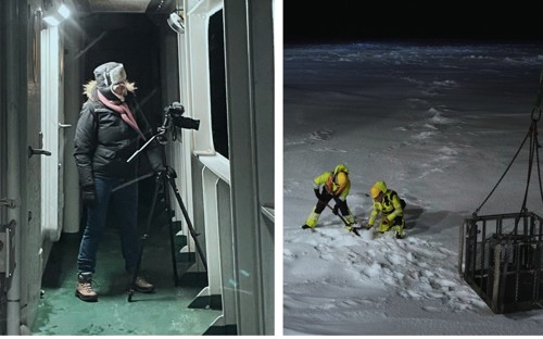 Figure 6: Hekla Jonsdottir is filming outside the vessel during ice station operations. Photo: John Jgrzinich